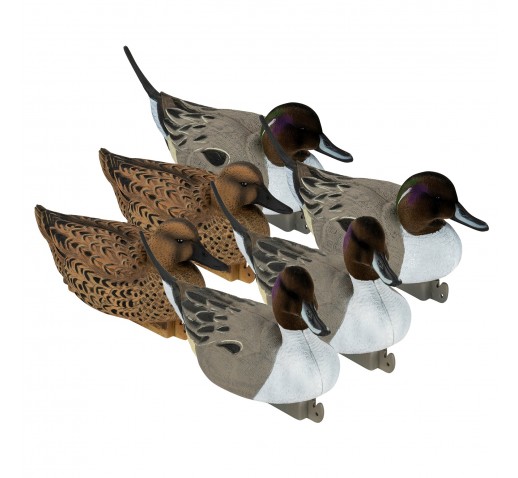 The Flight Flocked Pintail Decoys from Tanglefree are expertly crafted for serious waterfowl hunters who demand realism and performance. Featuring intricate carvings by master carver Michael Braun and finished with ultra-realistic paint schemes, these decoys are built to fool even the most skeptical birds. Each Drake decoy also features a fully-flocked head for added realism and visibility at long distances. Built with our proven weighted keel, these decoys ride naturally in the water for an ultra-convincing spread.