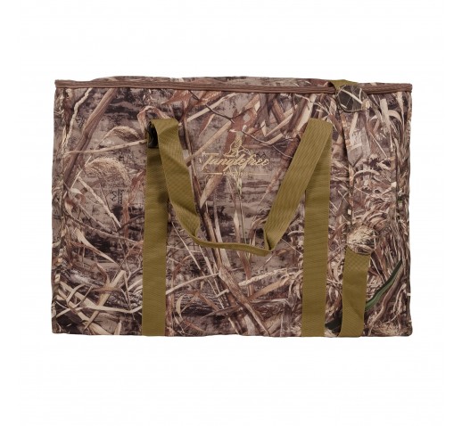 The Deluxe 6 Slot Goose Decoy Slot Bag will accommodate any brand of full body life size/lesser Canada goose decoys and greater Canada floating decoys. While other brands use a thin nylon tops with drawstring to secure decoys, this bag has a fully zippered cloth top for the ultimate added protection. The zippered top will help keep out UV light, road grime, mud/snow/ice, and provide the greatest protection to your decoys.