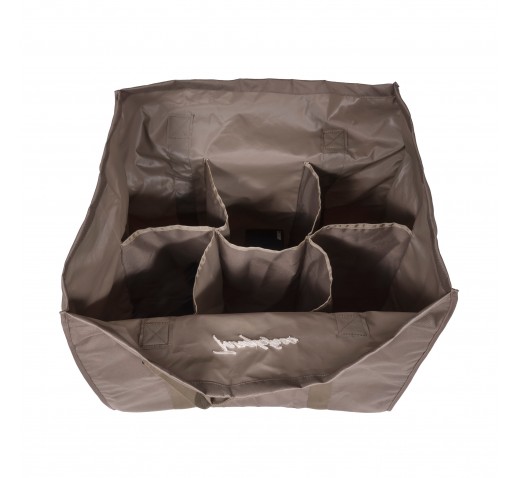 Features: Six slotted pockets, adjustable and padded shoulder strap, carrying handles. Size: 27" x 18" x 28" Slot Size: 9" x 9" x 28"