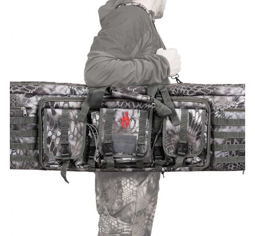 Our ultra-high performance double tactical rifle case is long enough to accommodate most rifles and shotguns. It also includes three large exterior pockets. This heavy-duty case features advanced multi-level concealment technology and can be carried or worn as a backpack. 100% polyester