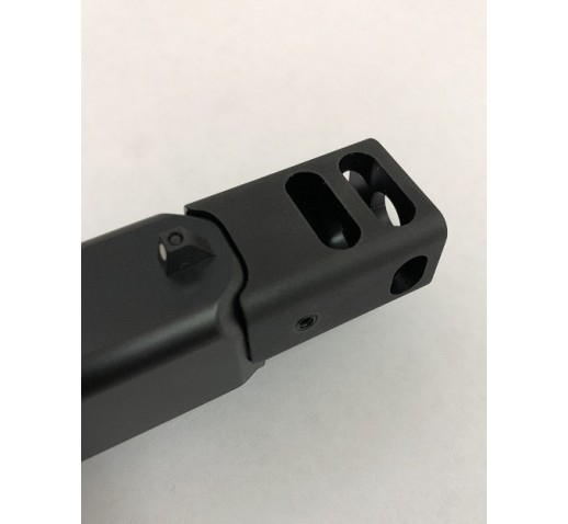Threaded barrel length 4.905″OAL with a maximum length option of 6.2″. Compensator will extend an inch and one quarter past the slide. If you would like a custom length between these, just enter it into the optional note section on the checkout screen. We read every note and there is not an extra charge for a custom length.